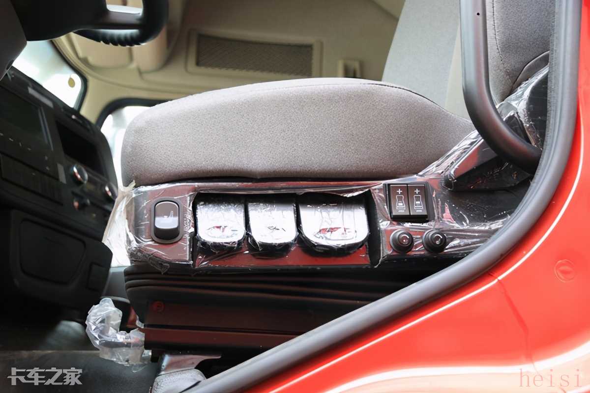 最后我們?cè)倏聪聝?nèi)飾部分,打開(kāi)車(chē)門(mén)首先映入眼簾的是氣囊減震座椅,座椅支持阻尼調(diào)節(jié)、腰背部支撐調(diào)節(jié)、仰角調(diào)節(jié)以及快速充放氣等功能,包裹性也非常不錯(cuò)??ㄓ褌兤毡橐荒晁募径荚谲?chē)上度過(guò),夏天開(kāi)車(chē)時(shí)身上容易出汗、冬天開(kāi)車(chē)時(shí)座椅往往太冷太冰,這款車(chē)座椅標(biāo)配通風(fēng)加熱功能,讓卡友一年四季都能擁有舒爽的駕乘體驗(yàn)。