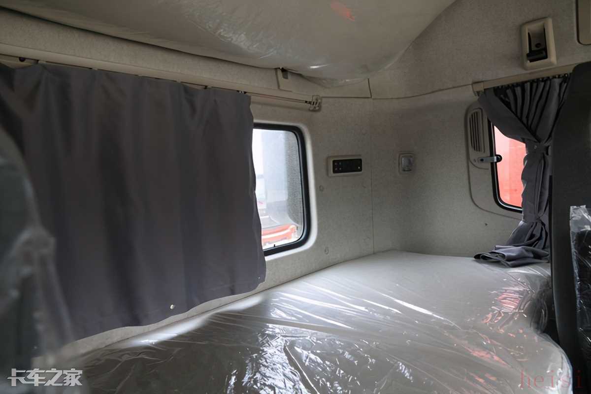 休息區(qū)域配備有雙臥鋪,可以同時(shí)滿足兩位駕駛員的休息需求。下臥鋪?zhàn)顚捥庍_(dá)到870mm左右,以大多數(shù)人的體形來(lái)說(shuō)這個(gè)尺寸是非常足夠了。臥鋪四周安裝有窗簾,睡覺(jué)時(shí)可以為駕駛員營(yíng)造良好的休息氛圍。