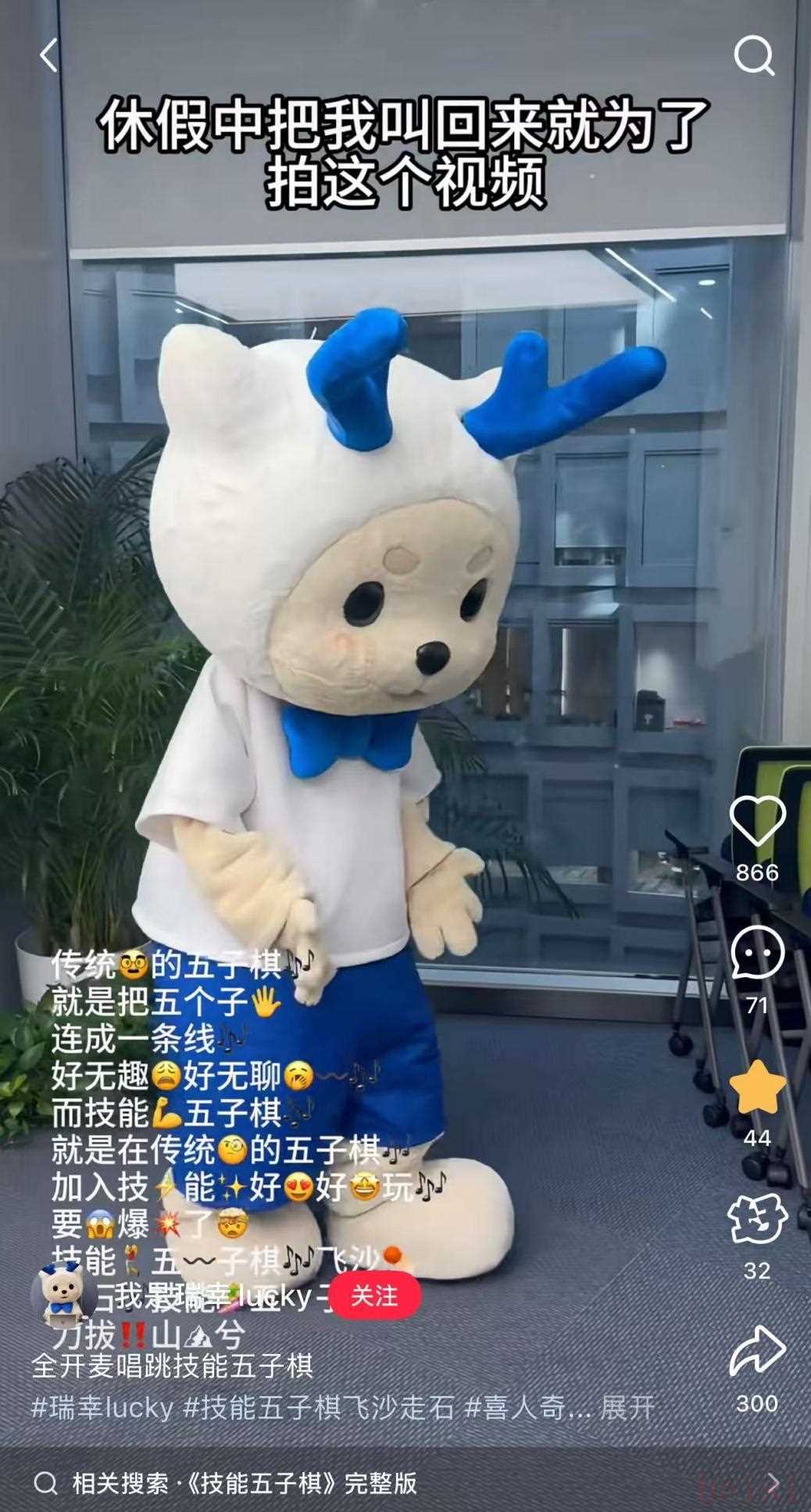 話雖如此,Lucky該干的活卻一點沒少。視頻里,Lucky先是在棋盤上擺出了自己的麋鹿圖案,宣誓主權(quán),然后霸氣全開麥唱跳。當(dāng)然啦,自家產(chǎn)品宣傳必不可少,耶加雪菲·美式和輕咖檸檬茶趁勢植入,勉強充當(dāng)黑白五子棋,并配上字幕:“棋子多,自己跟自己下技能五子棋”,家大業(yè)大的土豪味簡直溢出了屏幕。網(wǎng)友紛紛留言互動:“瑞也被傳染了嗎?”