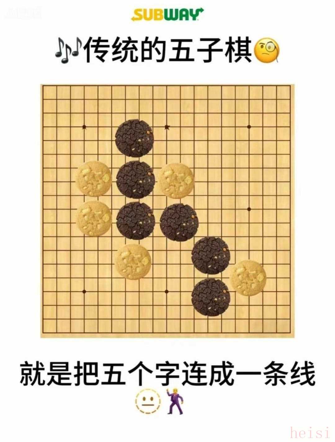 以賽百味、享多味、天好咖啡為代表的品牌基本復(fù)刻了旺旺黑白五子棋小饅頭的路線,從食物上大做文章,賽百味將黑白雙色曲奇擺出五子棋陣勢,天好咖啡的棋盤上是雙色技能貝果棋,享多味的漢堡雖然都是一樣顏色,但香辣雞腿堡和安格斯牛肉煲怎么不算兩個物種呢?照樣可以下技能五子棋。
