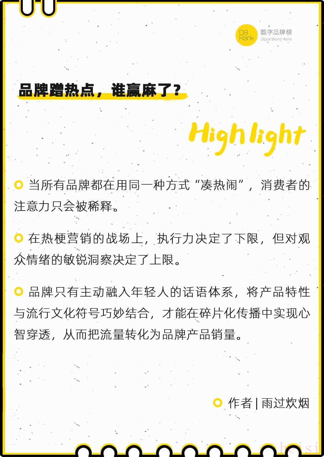 而且,對于品牌而言,真正的年度級熱梗極為稀有,機會窗口轉(zhuǎn)瞬即逝。所以,下次看見熱梗時,記得“決策要快,姿勢要帥”,要像擠上早高峰地鐵一樣當(dāng)機立斷。