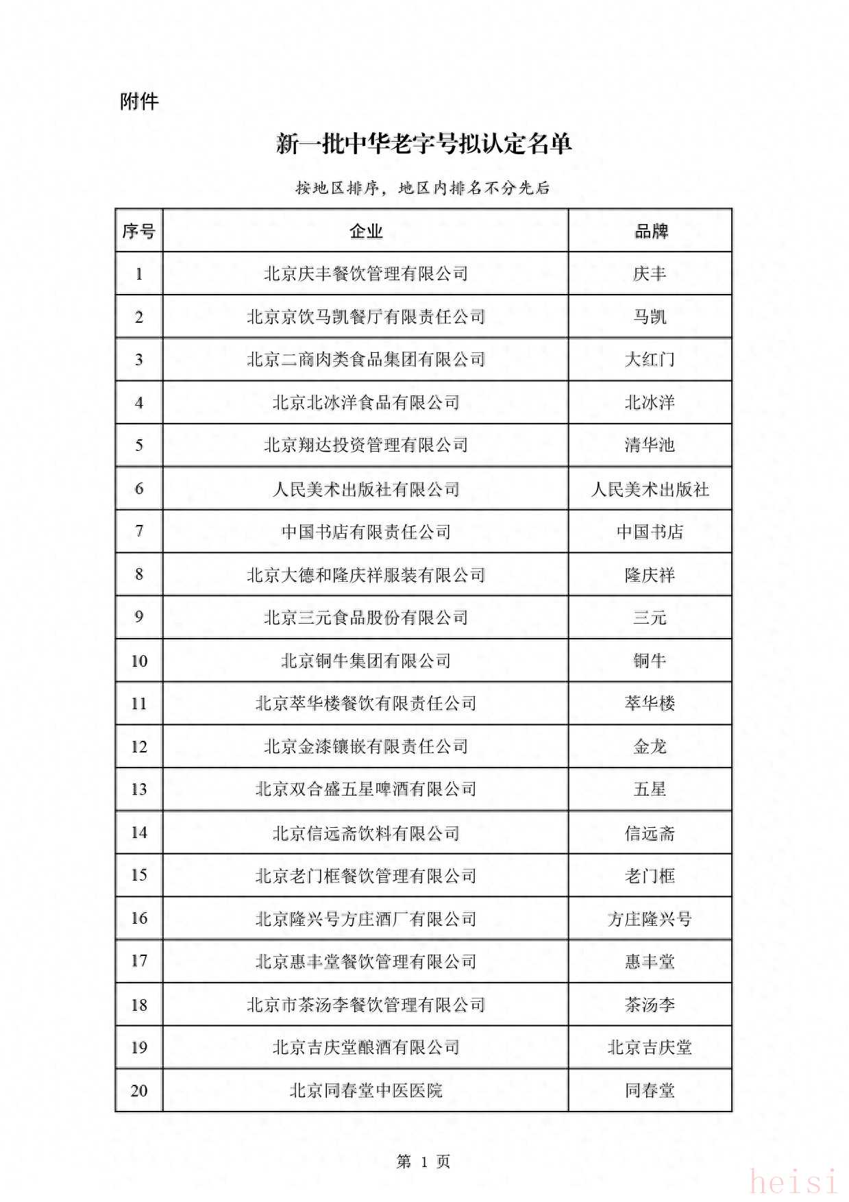 以下是入選的34家“中華老字號(hào)”品牌(按公布順序排列):