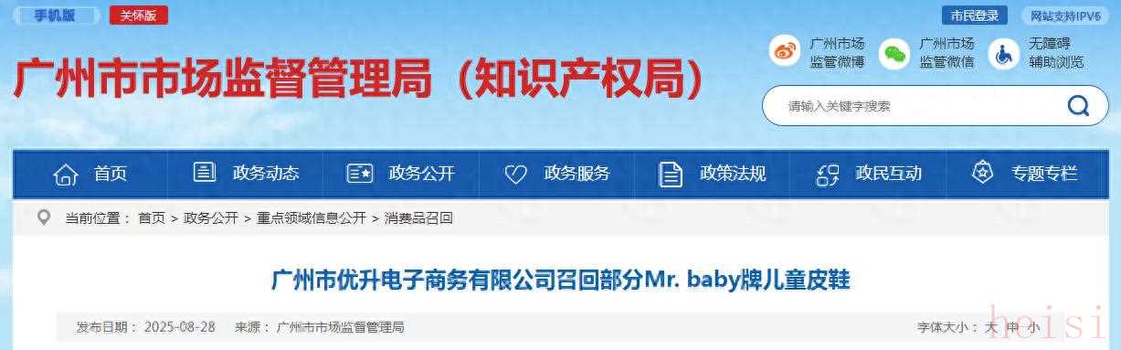根據(jù)公開信息,廣州市優(yōu)升電子商務(wù)有限公司確實(shí)曾召回部分Mr. baby牌兒童皮鞋。