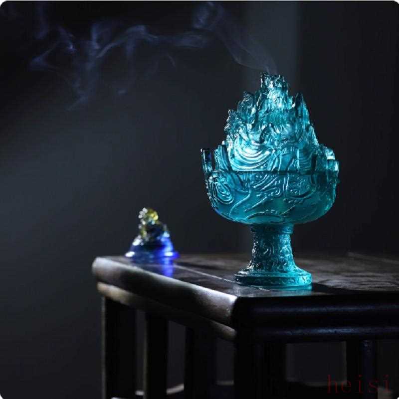 家居擺件系列則將琉璃的美帶入了人們的日常生活 。琉璃香薰?fàn)t,在裊裊香煙中,散發(fā)著柔和的光芒,為家居增添了一份寧靜與溫馨 ;琉璃花插,以其晶瑩剔透的質(zhì)感,襯托出鮮花的嬌艷,成為家中一道亮麗的風(fēng)景線 。善也造物的一款古法琉璃蓮花香插,蓮花的造型栩栩如生,花瓣透如晨露,光一照泛起青粉漸變暈彩,將其擺放在家中的窗臺(tái)或書桌,瞬間便能提升整個(gè)空間的文化品位和藝術(shù)氛圍 。