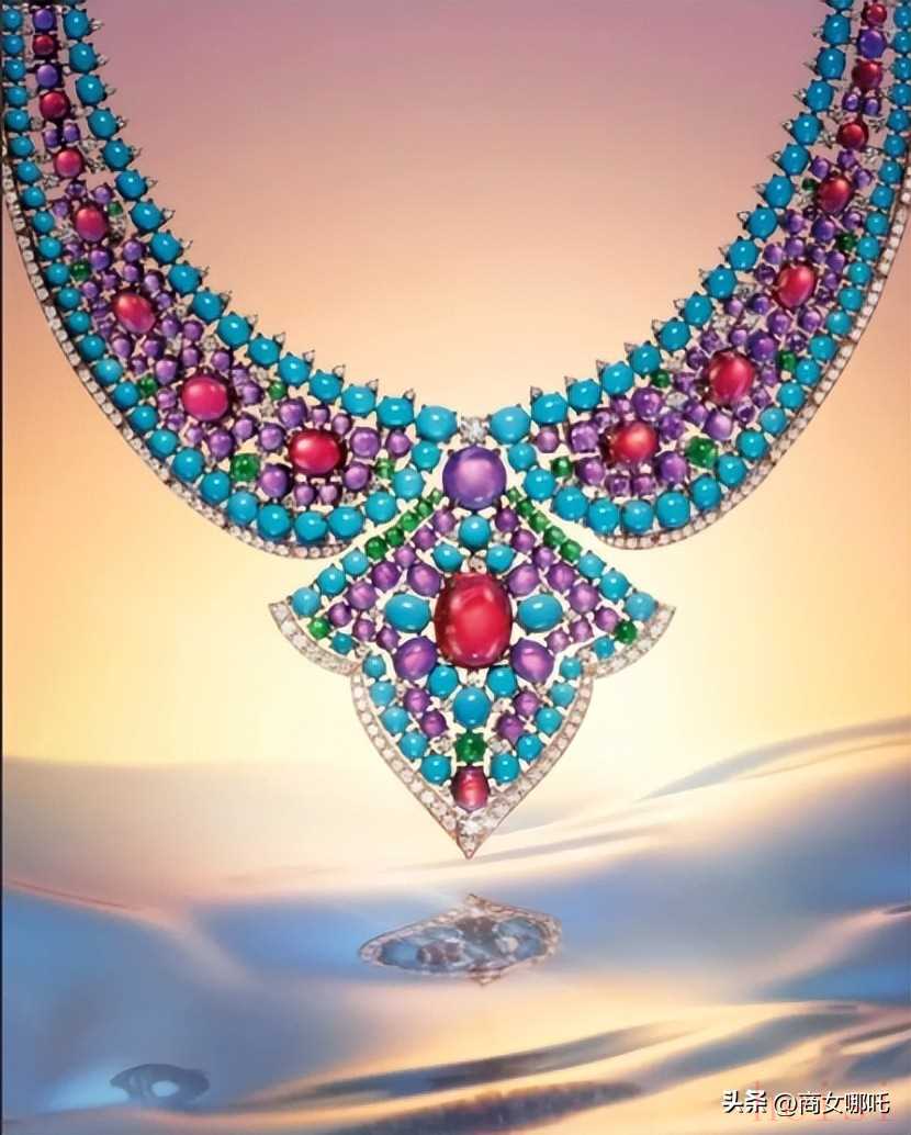 區(qū)別于卡地亞的鉑金鉆石、蒂芙尼的簡(jiǎn)約藍(lán),寶格麗以“色彩交響樂”著稱。