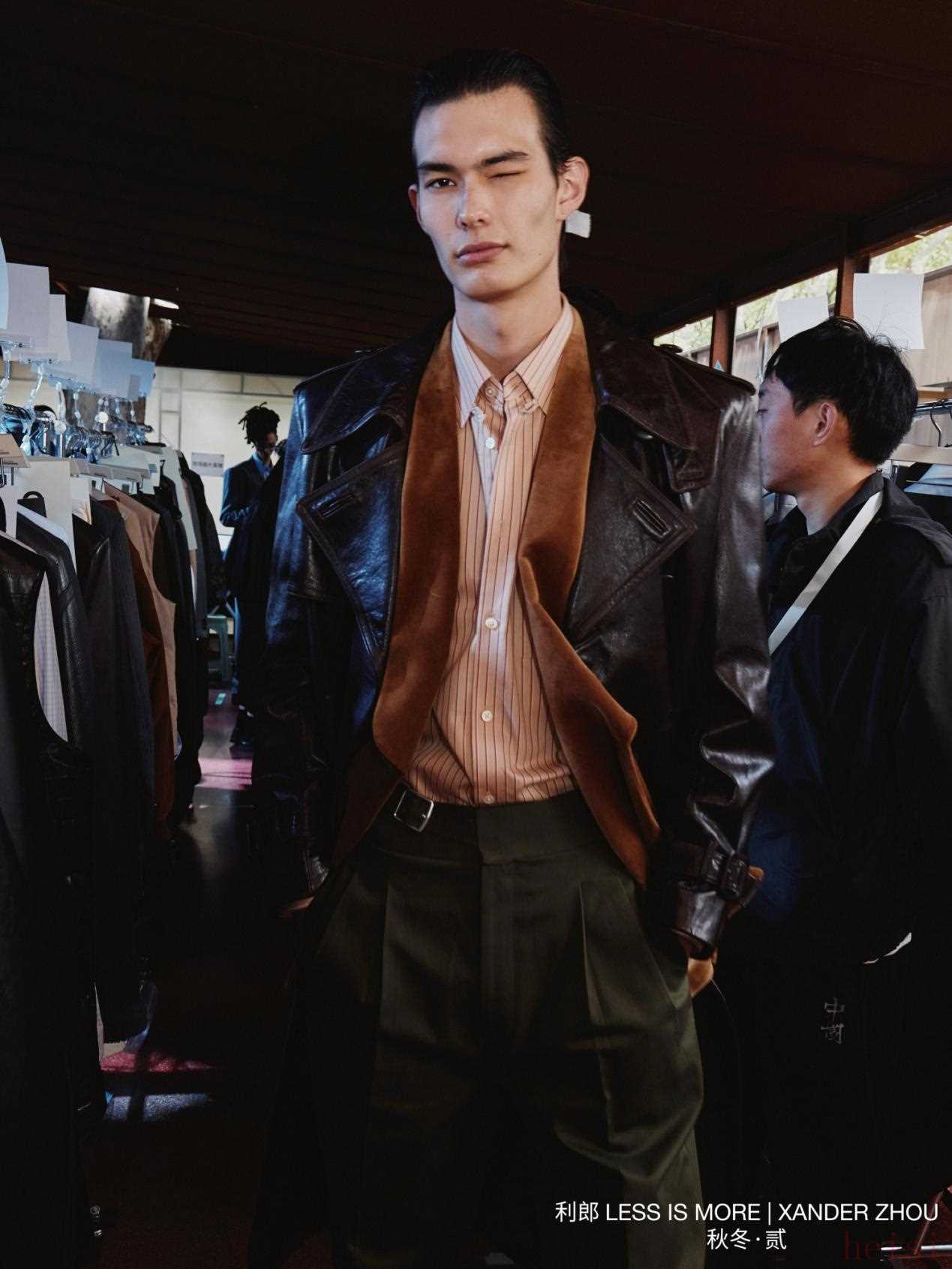 “沒(méi)有為了‘設(shè)計(jì)’而設(shè)計(jì),更關(guān)心的是,這些服裝如何豐富地表達(dá)出都市男性在現(xiàn)實(shí)中的多重狀態(tài)。”在「From Stone to Structure|由石至形」系列中,設(shè)計(jì)師周翔宇XANDER ZHOU并未追求形式上的設(shè)計(jì),而是更聚焦于服裝如何呈現(xiàn)都市男性的多元形象。其將跨文化視覺(jué)與對(duì)男裝體系的當(dāng)代解讀融入設(shè)計(jì)邏輯中,并轉(zhuǎn)化為對(duì)服裝輪廓、比例、材質(zhì)的表達(dá)。西裝、大衣、皮革襯衫與針織層疊構(gòu)成了“理性衣櫥”的骨架,比例與結(jié)構(gòu)之間形成自洽的秩序感。