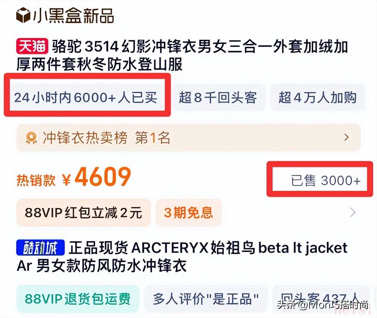 再看某寶,駱駝的一款沖鋒衣銷售量更是高得離譜,24小時內(nèi)就賣出了6000多件,雖然這能證明駱駝這個品牌得到了大家的認(rèn)可,也說明了這個品牌的衣服質(zhì)量確實有所保證,消費者們都很信任,但對于想要穿得時髦,彰顯個性的男人來說,駱駝顯然不是一個很好的選擇。
