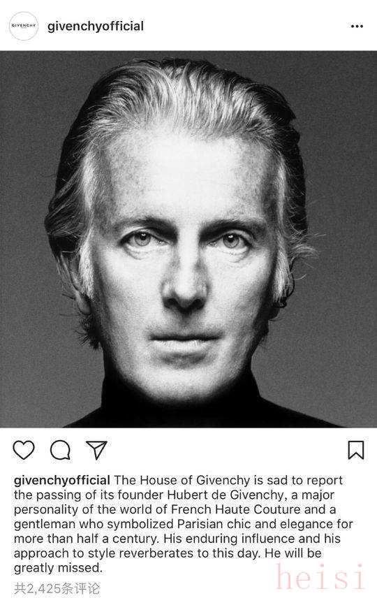 法國當地時間3月12日,法國新聞社AFP對外公布了知名設計師Hubert James Marcel Taffin de Givenchy去世的消息,Givenchy品牌官方社交平臺也已發(fā)布相關信息。根據相關報道,紀梵希先生在當地時間3月10日去世,享年91歲。作為法國高級定制行業(yè)的重要代表人物,紀梵希先生的風格長久地影響著整個行業(yè),也為我們定義了優(yōu)雅,我們將會永遠銘記他。