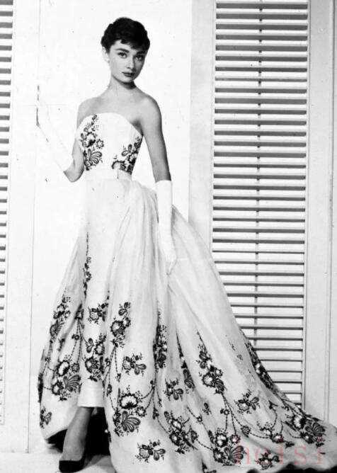同樣讓人印象深刻的還有另外兩套服裝,一件深灰色的套裝,剪裁妥帖、優(yōu)雅迷人,另一件絲綢抹胸晚裝更是華美無(wú)比,讓赫本星彩熠熠。