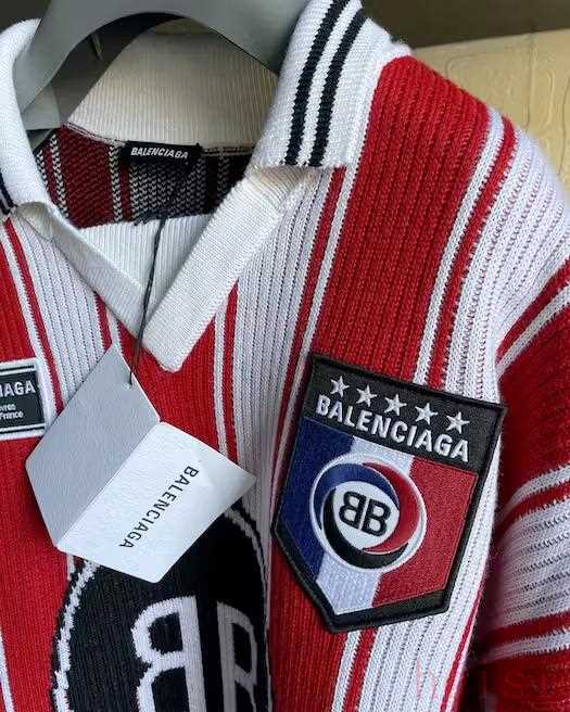 「足球針織 Polo」的火熱過程,其實頗為有趣,Balenciaga 作為「高級時尚 x 足球球衣」代表品牌,數年前變便嘗試了此種設計,但并沒有太高熱度,當下足球針織 Polo趨勢,則得益于「網球時尚針織 Polo x 足球時尚 Blokecore」的大熱;