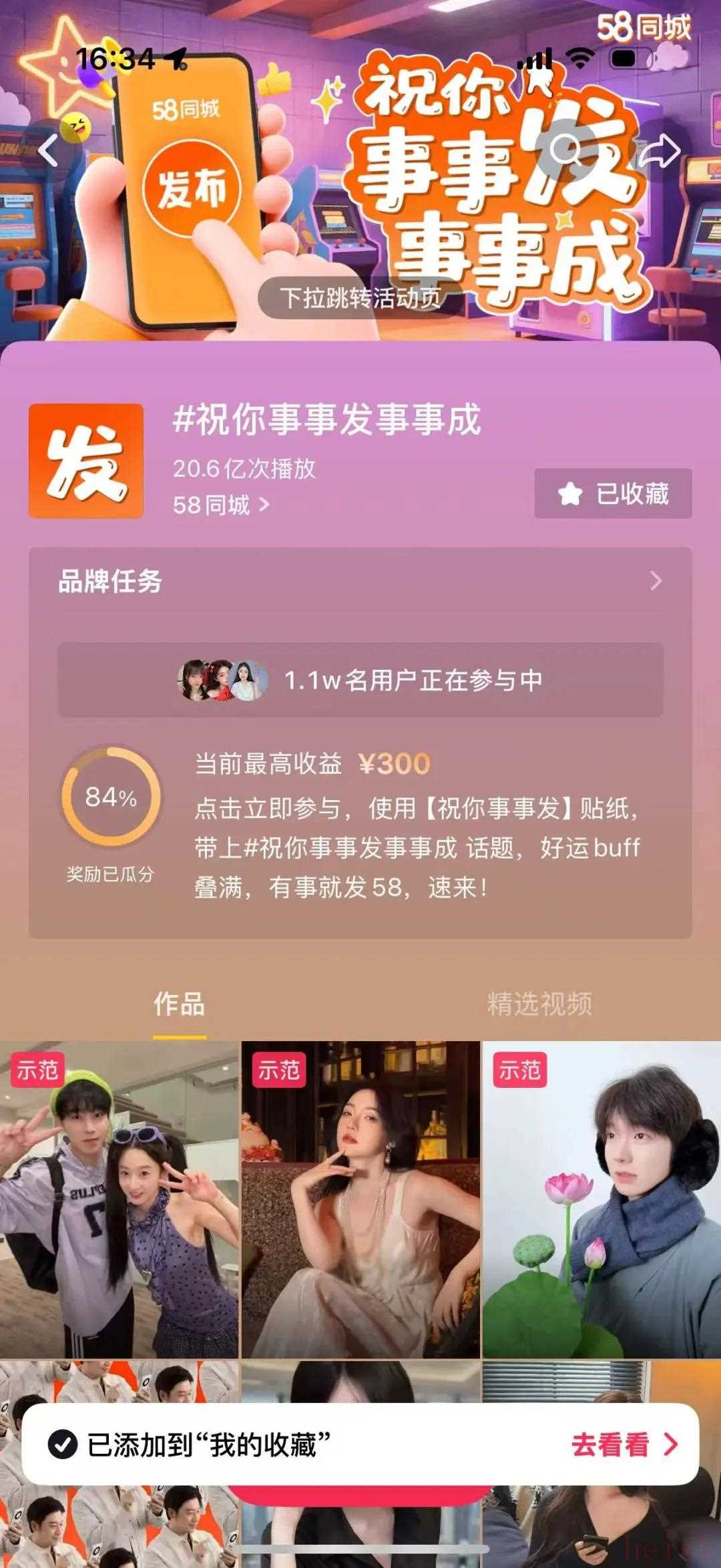 在魔性TVC火出圈后,58同城還在抖音發(fā)起了#祝你事事發(fā)事事成 的全民挑戰(zhàn)任務(wù),有不少的娛樂達人自發(fā)參與其中,而后大眾爭相參與并形成自來水傳播。截至發(fā)稿日,該全民挑戰(zhàn)任務(wù)引發(fā)了20.6+億次的播放,可見58同城通過全民挑戰(zhàn)互動傳達的美好祝福引起了用戶的高度互動和共鳴。