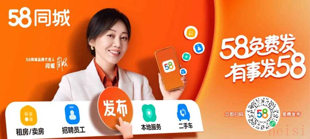 你有沒有發(fā)現(xiàn),最近在地鐵換乘站、商圈大屏,甚至小區(qū)門口的公告欄,都能看見58同城的廣告?可以說這是一場精準的“視覺飽和攻擊”。廣告沒有復(fù)雜的圖片和文字,只有大面積的品牌色和代言人閆妮的加持,加上超大號的“58免費發(fā)”,再配一句短到能記住的話,迅速搶占大眾的心智。