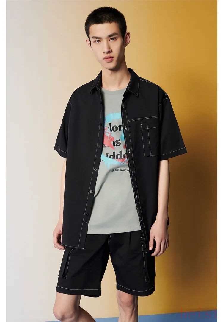 說完了長袖襯衫,那就不得不再把目光轉(zhuǎn)向短袖。這樣的白色短袖襯衫,是不少人的不二選擇吧。我就看到過很多男生,夏天喜歡這么穿。