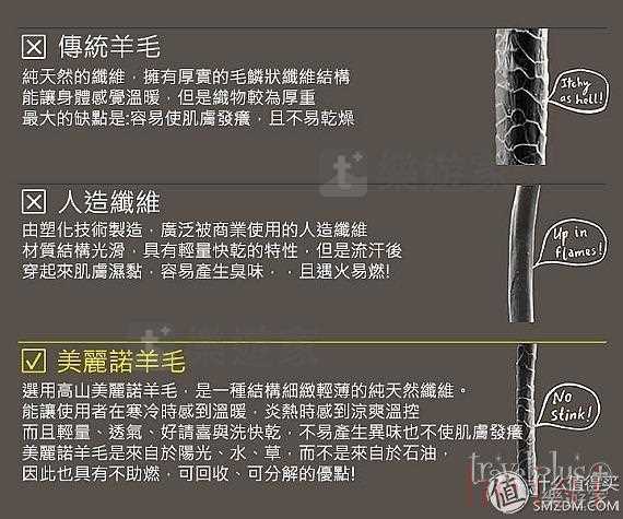 【美利奴羊毛】選用高山美利奴羊毛,是一種結(jié)構(gòu)細(xì)緻輕薄的純天然纖維。能讓使用者在寒冷時感到溫暖,炎熱時感到?jīng)鏊瑴乜兀逸p量、透氣、好清洗與快乾,不易產(chǎn)生異味也不使肌膚發(fā)癢。美利奴羊毛是來自于陽光、水、草,而不是來自于石油,因此也具有不助燃、可回收、可分解的優(yōu)點!