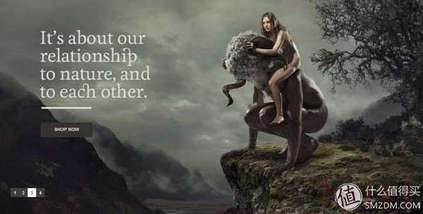 看看Icebreaker的幾張廣告圖片,我覺得非常有沖擊力,尤其是女性和羊頭人的結(jié)合,很好地表達了品牌主打天然和保暖的特色。