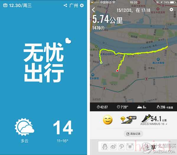 按照洗滌方法說明,我用清水手洗后穿著,并選擇在2015年12月30日下午5點多鐘進行了5.74km的慢跑,當時廣州的天氣是多云,氣溫為14攝氏度。因為當天江邊風(fēng)比較大,我在Icebreaker的底層衣外面還加了一件Nike的薄款防風(fēng)風(fēng)衣。
