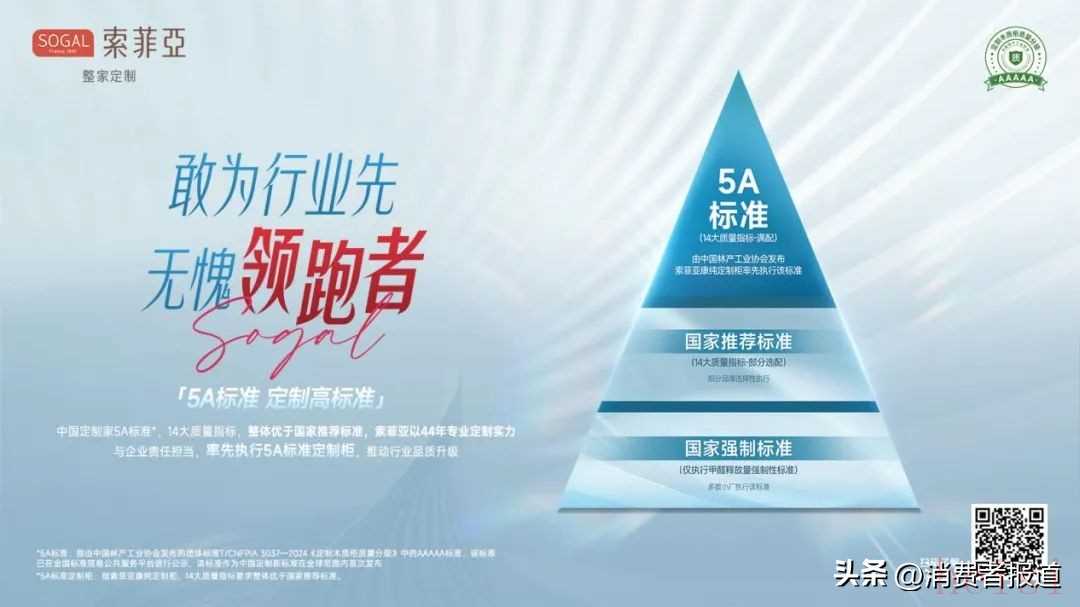 2025年索菲亞聯(lián)合中國林科院起草發(fā)布了“中國定制家5A標準”,整合了14項核心質(zhì)量指標,首次將板材高標準升級到“整柜”高標準,實現(xiàn)了“優(yōu)于國標,品質(zhì)平權(quán)”。這是索菲亞在品質(zhì)高基準之上的再一次突破和引領(lǐng),回顧行業(yè)標準化的發(fā)展,索菲亞更是兩項環(huán)保新國標、以及孕嬰標準的起草單位和主要推動者。索菲亞不僅是高品質(zhì)的踐行者,更是推動行業(yè)標準升級,共同提升品質(zhì)的先行者。