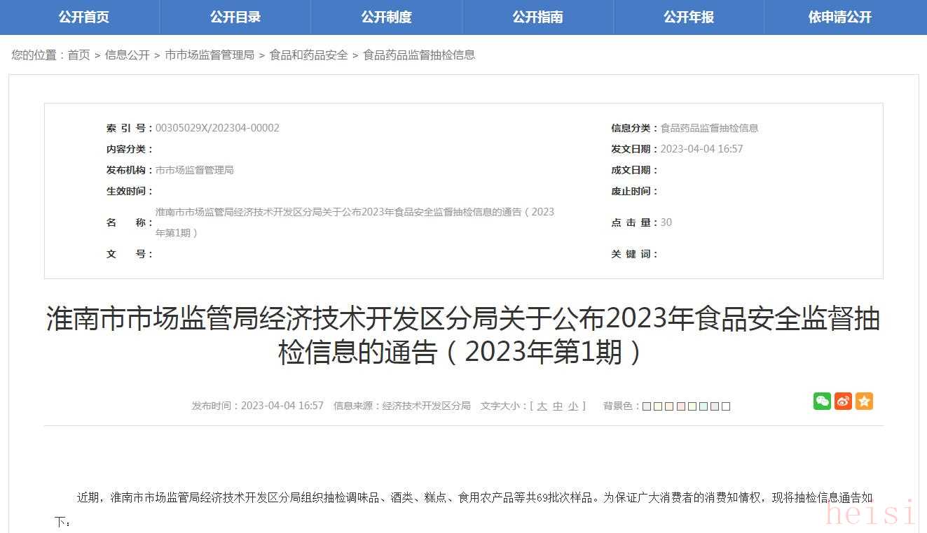 根據(jù)您提供的信息,安徽省淮南市市場監(jiān)管局經(jīng)濟技術(shù)開發(fā)區(qū)分局近期進行了一次食品安全抽檢,共抽檢了69批次食品,結(jié)果顯示有2批次食品不合格。