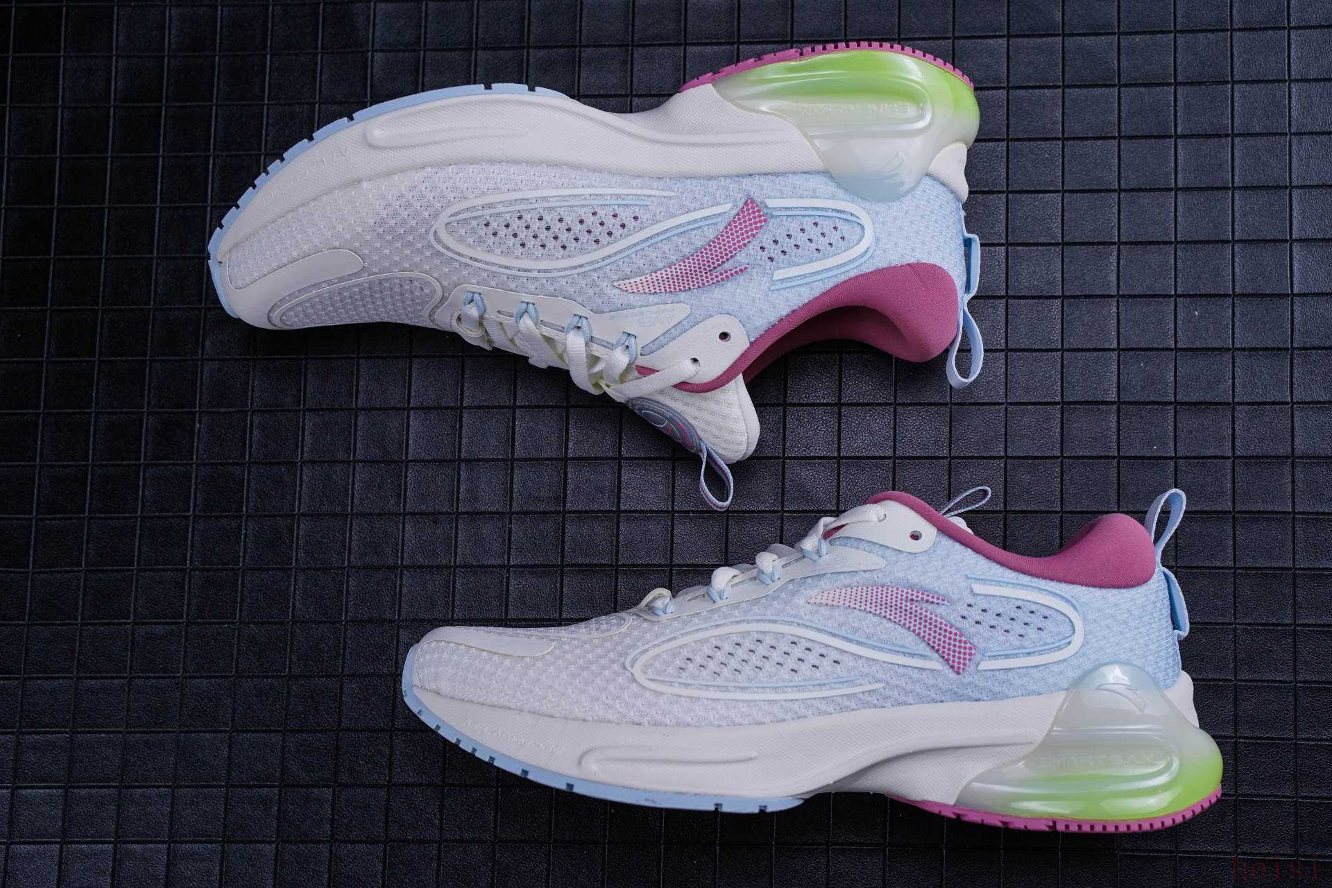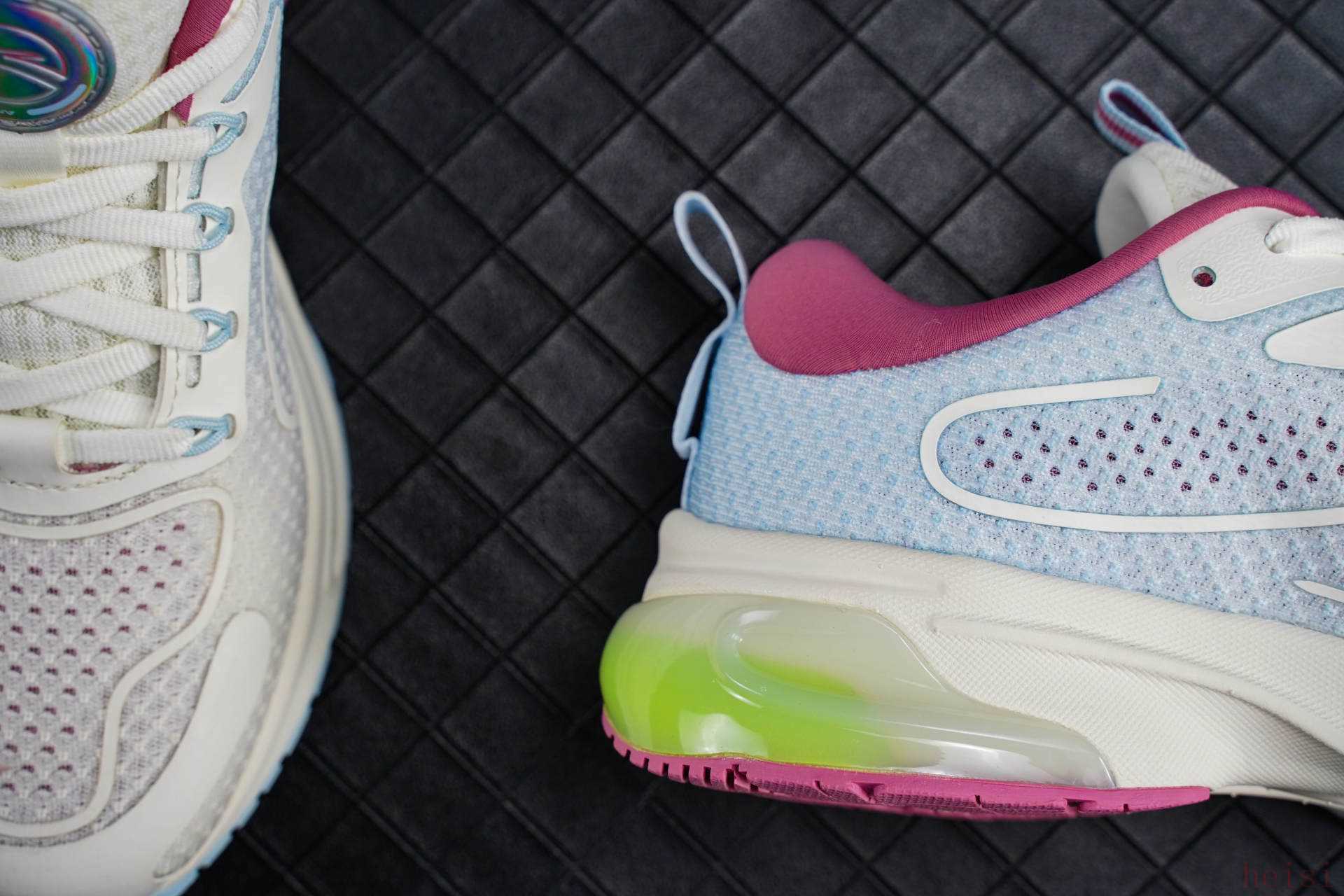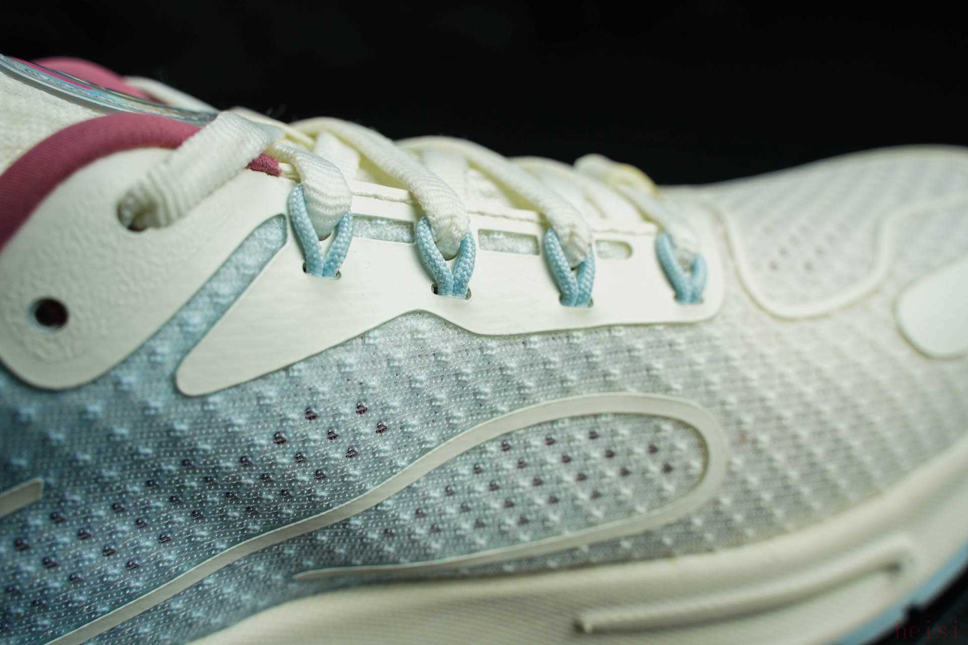 那么我們一起看看安踏運動品牌究竟怎樣吧!首先今天出席的是安踏跑鞋系列,顏色是象牙白/淺明藍它是一款女士跑鞋,面料是針織材質編織而成的。