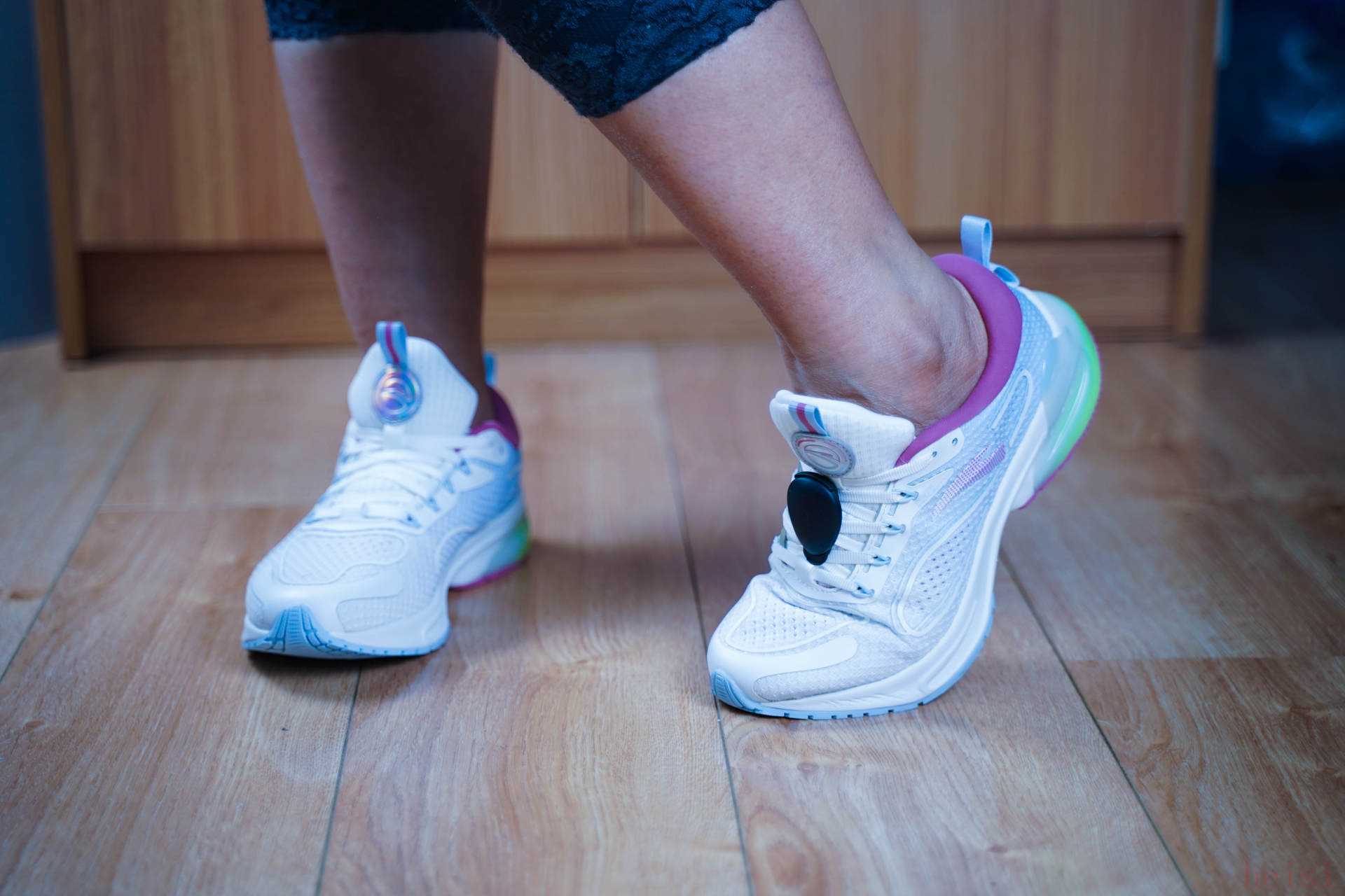 再將跑步精靈固定在左腳鞋帶上,這樣在你跑步過程中,我會實時檢測你的跑步姿態(tài),并給你語音反饋哦。