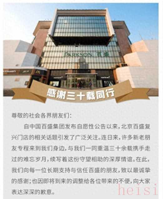 10月10日,北京百盛發(fā)布公告稱,北京百盛復(fù)興門店將于2025年12月31日關(guān)閉。對于閉店原因,公司解釋,百盛集團正全面推進一場積極而全面的戰(zhàn)略轉(zhuǎn)型,對于受限于客觀條件、難以在復(fù)合需求上實現(xiàn)均衡發(fā)展的門店,經(jīng)過慎重評估不得不做出艱難但必要的決定。
