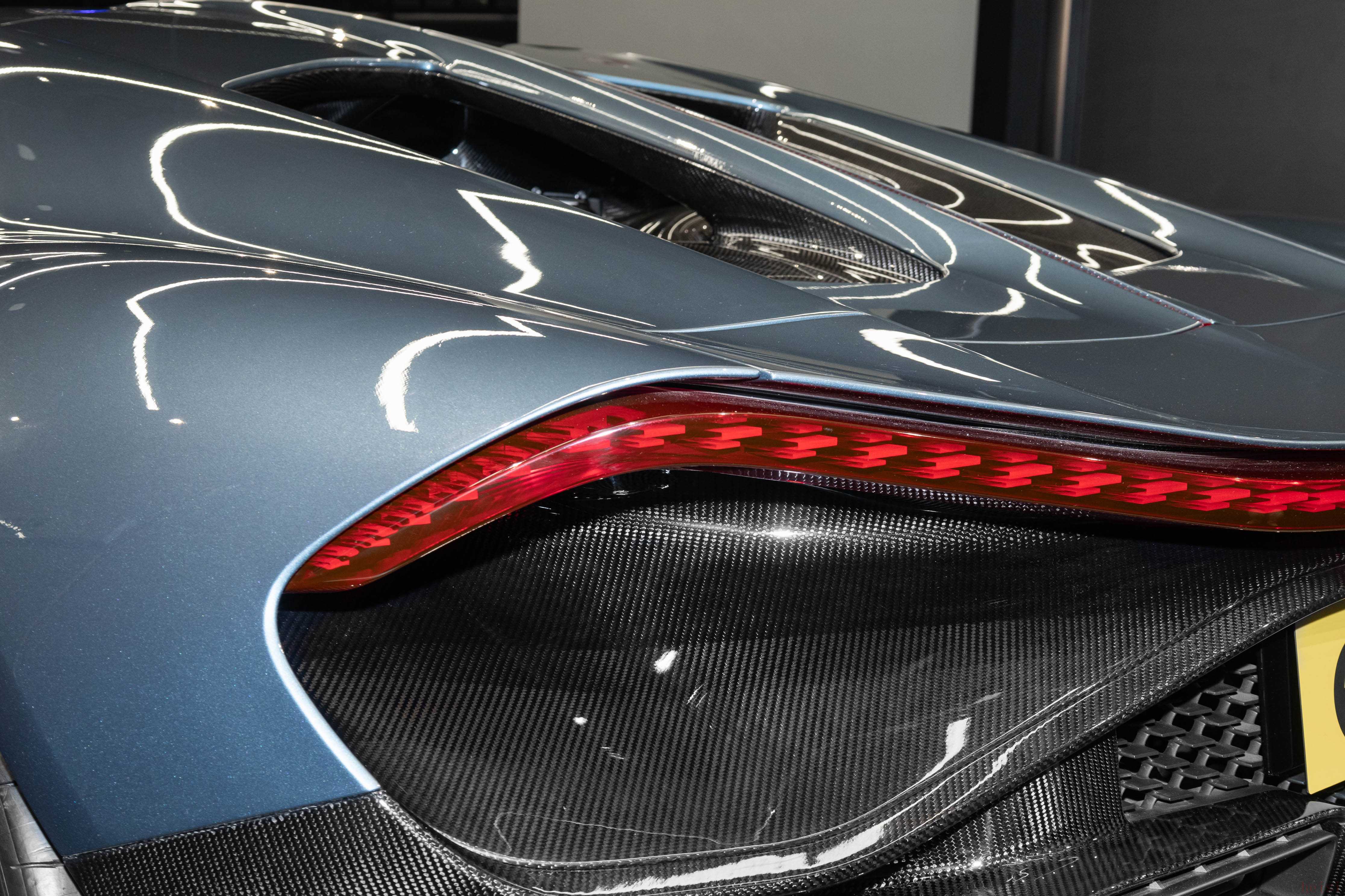車尾部分,Tourbillon依舊配備了大尺寸的主動(dòng)式升降尾翼,能夠在高速狀態(tài)下,根據(jù)不同的車速來(lái)調(diào)整尾翼角度,為車身后部提供充足的下壓力。尾燈采用了貫穿式設(shè)計(jì),并融入曲線元素以及“BUGATTI”字樣的品牌標(biāo)識(shí),使尾部的識(shí)別度進(jìn)一步提升。后包圍還設(shè)計(jì)有尺寸夸張的擴(kuò)散器造型,這也是超級(jí)跑車的標(biāo)志性元素之一。此外,在底盤下方也設(shè)計(jì)有碳纖維材質(zhì)的空氣動(dòng)力學(xué)套件。