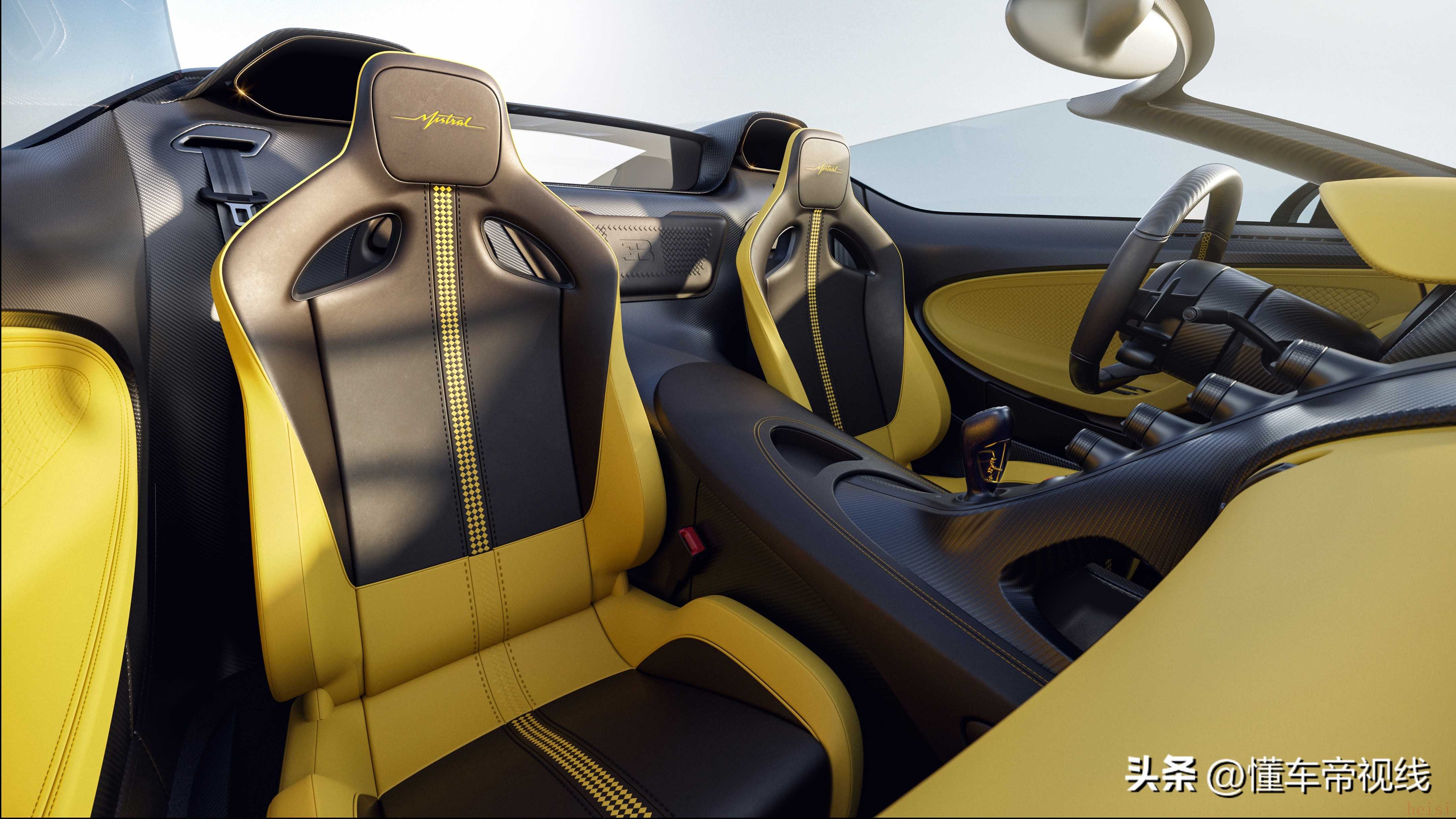 新車內(nèi)飾沿用了Chiron的設(shè)計,采用黃色和黑色搭配。另外,布加迪也依然擁有對材料質(zhì)量的極致追求,輕質(zhì)鈦合金、用整塊鋁材加工而成的部件,以及十分柔軟的皮革都將出現(xiàn)在布加迪 W16 Mistral這款車上。