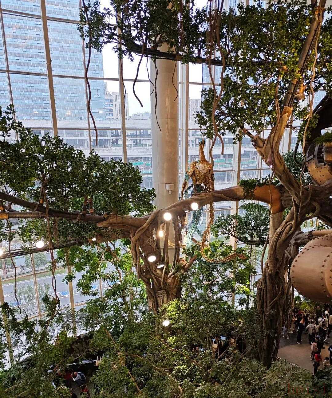 在場景設(shè)計這塊兒,有“峽谷綠景”,還有空中花園,還有個結(jié)合機械和植物想法設(shè)計出來的叫“世界樹”的超厲害場景,想弄出那種讓人沉浸進去的感覺,不過像“世界樹”這樣的一些裝置在網(wǎng)上評價不一樣,有人覺得不咋驚艷,有時候也能聽到吐槽,但整體的氛圍還是能吸引不少年輕人來拍照打卡。