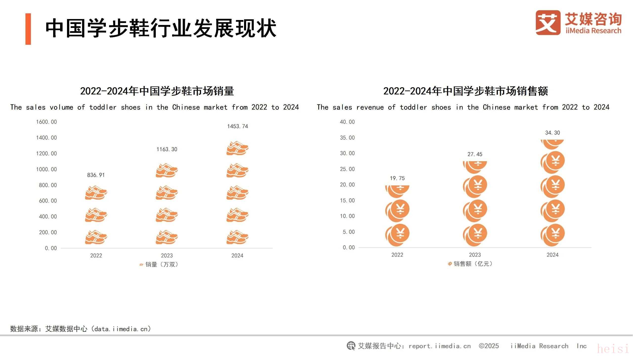 近年來,中國童鞋行業(yè)呈現結構性分化態(tài)勢,運動鞋、拖鞋等產品銷量普遍承壓,而學步鞋卻展現出強勁的增長韌性,實現逆勢增長。iiMedia Research(艾媒咨詢)數據顯示,2024年中國學步鞋市場銷量突破1453.74萬雙,銷售額達到34.30億元,成為童鞋行業(yè)最具潛力的細分賽道之一。隨著科學育兒理念的深入和消費升級趨勢的推進,學步鞋市場正加速向專業(yè)化、精細化方向發(fā)展,行業(yè)前景廣闊。