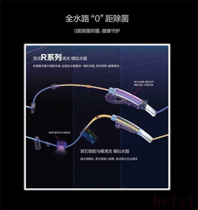 在注重清潔舒適的同時,恒潔衛(wèi)浴對健康保障也毫不松懈。其推出的0距除菌科技,是一項行業(yè)領先的噴槍水路殺菌專利技術。與以往將除菌模塊內(nèi)置在機芯內(nèi)部的方式不同,恒潔直接將殺菌裝置裝配于噴槍前端,實現(xiàn)“即殺即用”,清洗的同時完成殺菌,杜絕二次污染,尤其適合有老人與兒童的家庭。