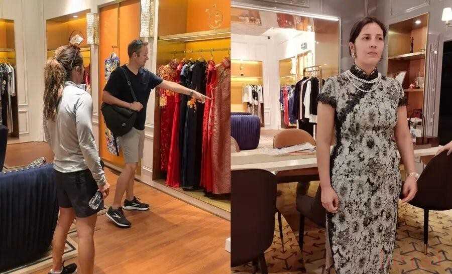 蔓樓蘭的總經(jīng)理陳黎說(shuō),服務(wù)一個(gè)外國(guó)客人,平均得花上兩個(gè)小時(shí)。他們問(wèn)得特別細(xì),從“什么是旗袍”到“龍鳳圖案有什么講究”,再到“這片刺繡要繡多久”,充滿(mǎn)了對(duì)這門(mén)手藝的好奇。但他們的購(gòu)買(mǎi)意向也特別強(qiáng),進(jìn)店的客人,三個(gè)人里就有一個(gè)會(huì)下單。董事長(zhǎng)裘黎明也提到,老外對(duì)旗袍的喜愛(ài)會(huì)形成一種“鏈?zhǔn)椒磻?yīng)”,自己買(mǎi)了,還要拍視頻發(fā)給國(guó)外的親戚朋友等于免費(fèi)做了宣傳。就算有人覺(jué)得價(jià)格不低,一聽(tīng)說(shuō)離境退稅差不多能打個(gè)九折,那消費(fèi)的動(dòng)力就更足了。