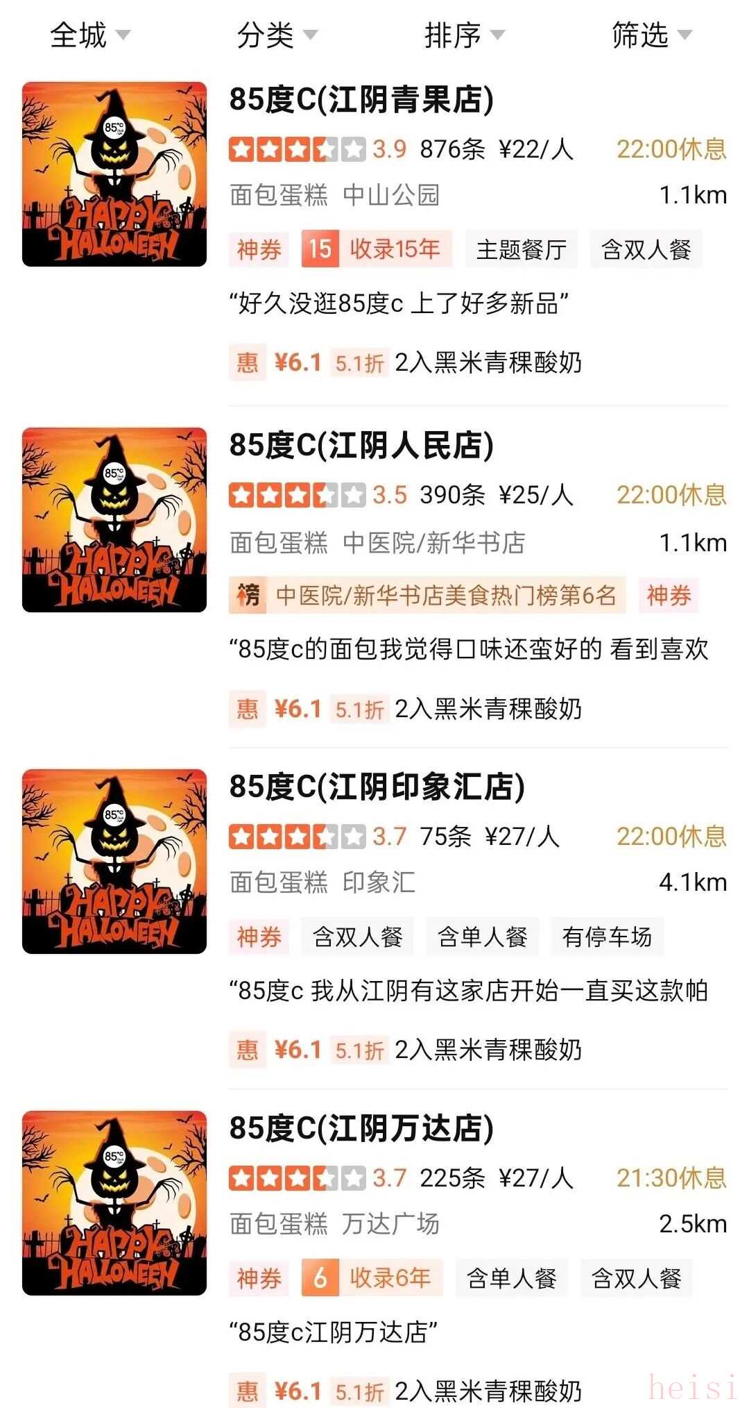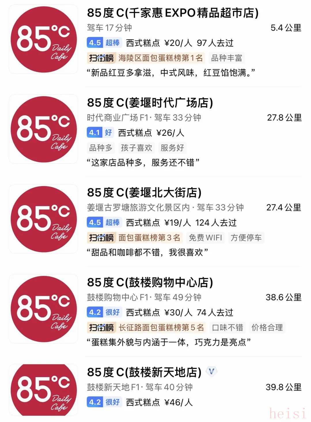 公開資料顯示,85度C成立于2003年,是一家中國(guó)臺(tái)灣的連鎖咖啡、蛋糕、烘焙品牌,2007年,85度C大舉進(jìn)軍中國(guó)大陸市場(chǎng),實(shí)現(xiàn)了每年近100家門店的瘋狂擴(kuò)張。據(jù)財(cái)報(bào)顯示,近年來,85度C增速放緩,其門店規(guī)模在近兩年內(nèi)迅速縮減。江陰的85度C正常營(yíng)業(yè)小最打開大眾點(diǎn)評(píng),看到江陰市區(qū)目前有四家85度C,都處于正常營(yíng)業(yè)的狀態(tài)。 來源:潮新聞、新民晚報(bào)、無錫eTV