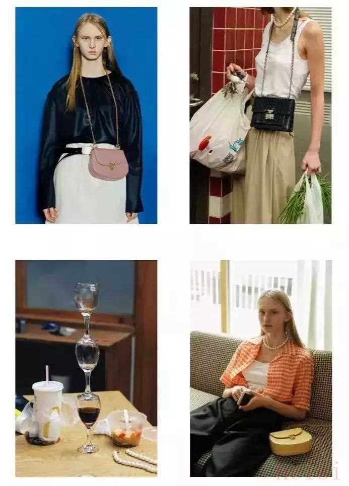 "鏈條包/腋下包:" 經(jīng)常有設(shè)計(jì)感十足的鏈條包或輕便的腋下包,適合日常出街、約會(huì)。