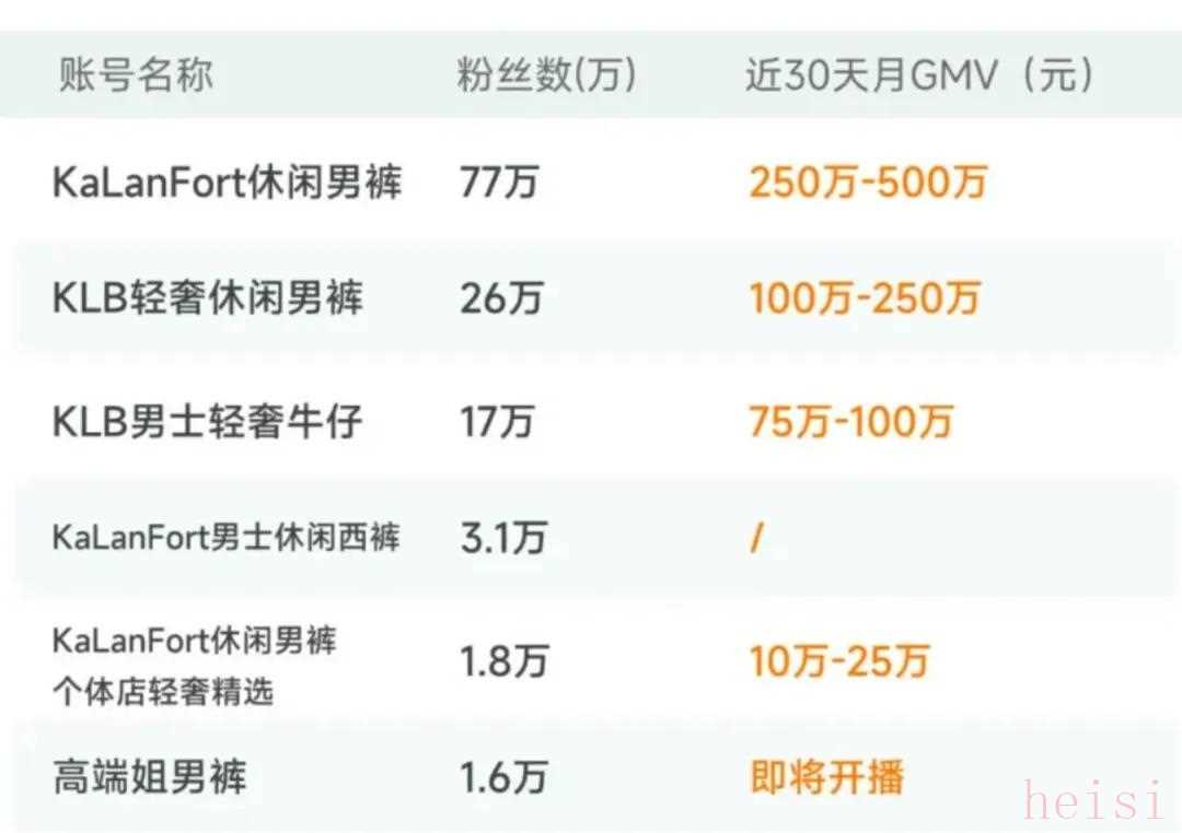 比她們還更早火一步的“高端姐”,也是名為“KaLanFort”的男褲品牌,在抖音上開的一系列店播賬號。