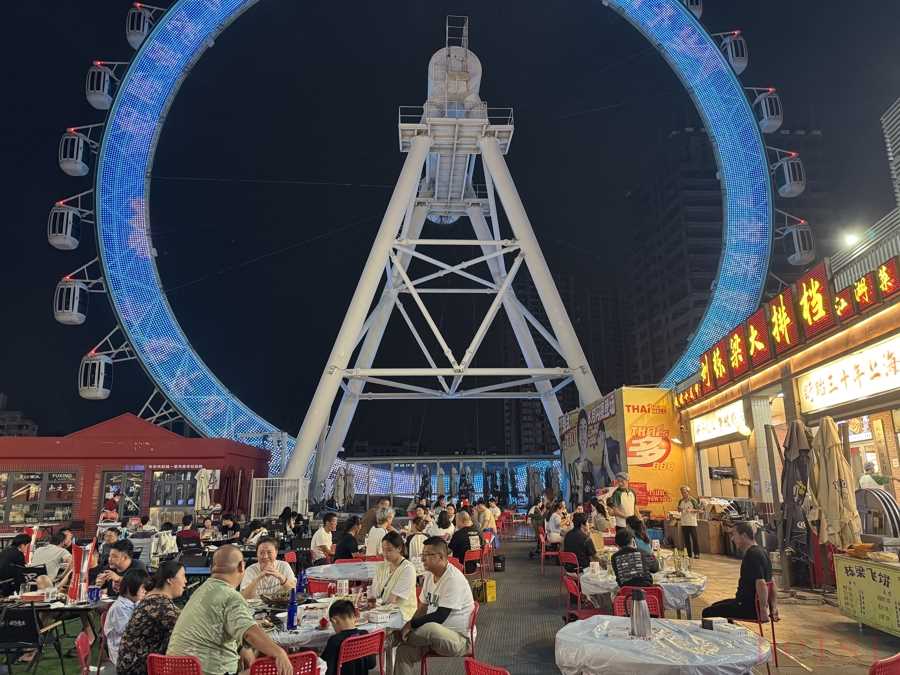 上周一晚上10時(shí)許,記者來(lái)到“夜食天臺(tái)”,只見(jiàn)這里的外擺區(qū)域熱鬧非凡,即便是工作日,仍有約八成上座率。