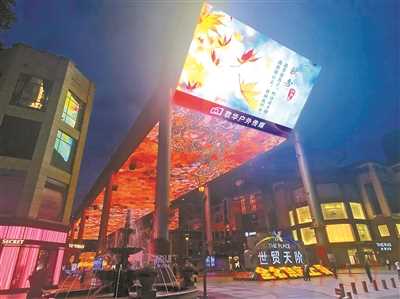 當(dāng)夜幕降臨,世貿(mào)天階巨大的LED天幕在頭頂緩緩鋪開。剛踏入世貿(mào)天階的步行街區(qū),視線便被頭頂橫跨250米、高30米的LED天幕牢牢吸引。不同于早年單一的影像播放,如今的天幕已升級(jí)為“沉浸式互動(dòng)空間”。傍晚6點(diǎn),一場(chǎng)“星空漫游”主題秀準(zhǔn)時(shí)開啟,一群大魚在屏幕上游走。在“全北京向上看”的五個(gè)金色大字前,許多市民拍照留念。據(jù)工作人員介紹,天幕每年會(huì)更新4-6個(gè)主題,結(jié)合節(jié)氣、節(jié)日推出定制內(nèi)容,比如春節(jié)的“龍年賀歲”動(dòng)畫、七夕的“星空告白”互動(dòng),甚至?xí)?lián)動(dòng)商圈內(nèi)的品牌,將新品發(fā)布信息融入天幕影像,讓“看天幕”從單純的視覺體驗(yàn),變成與商業(yè)消費(fèi)聯(lián)動(dòng)的“儀式感場(chǎng)景”。步行街區(qū)兩側(cè),商鋪布局也圍繞“天幕氛圍”展開。一層的咖啡店將戶外座位正對(duì)天幕,推出“天幕特調(diào)咖啡”,杯套印有當(dāng)天的天幕主題圖案;甜品店則設(shè)計(jì)了“星空慕斯”,造型與天幕中的星云影像呼應(yīng)。傍晚時(shí)分,這些戶外座位幾乎座無虛席,“天幕下的下午茶”成了不少年輕人的社交新選擇。