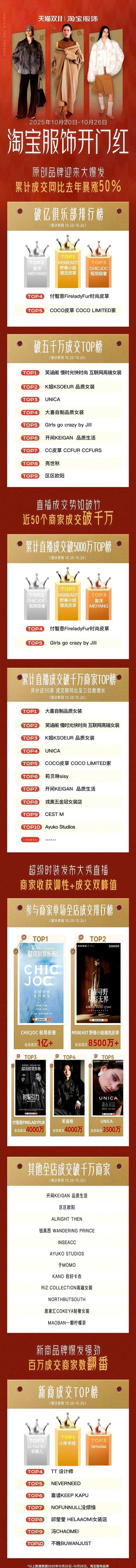 淘寶原創(chuàng)服飾品牌單場直播破億 23件單品賣出百萬銷量
