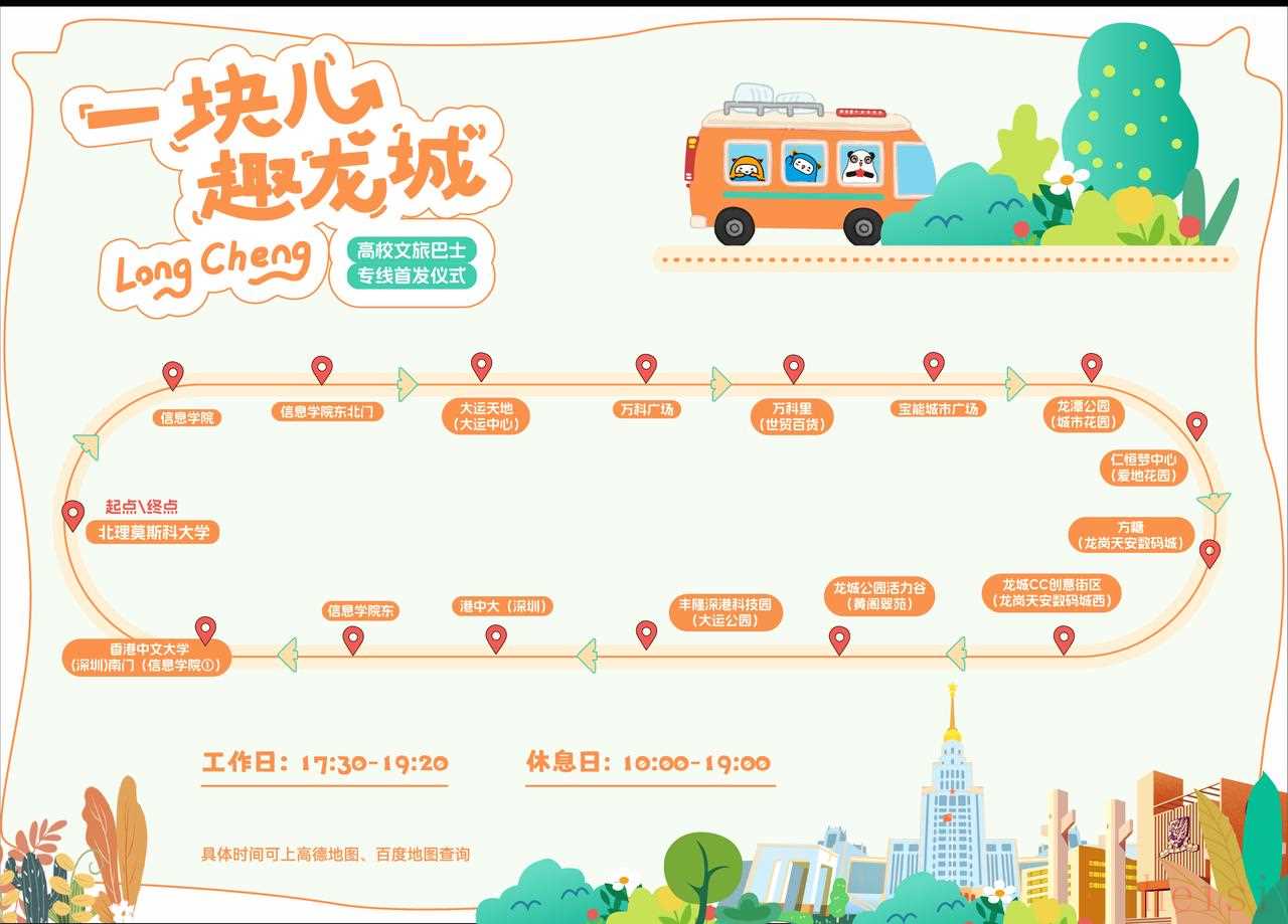 作為龍城街道服務高校工作的落地項目,高校文旅巴士專線以香港中文大學(深圳)、深圳北理莫斯科大學、深圳信息職業(yè)技術學院三所高校為起點,構建起“校城聯(lián)動”立體交通網(wǎng)絡。巴士車身設計融入三所高校地標圖案,成為流動的城市名片。