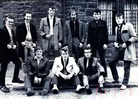 Teddy Boy興起于上世紀(jì)50年代的倫敦,繼而擴(kuò)散至整個英國。之所以名為Teddy Boy,則與他們風(fēng)格鮮明的穿著有關(guān)。戰(zhàn)后的這些年輕人自由散漫,不關(guān)心上學(xué)或上班,只鐘情于打扮自己和肆意玩樂。他們穿著愛德華七世時期的外套式樣——那是一種寬大的西裝外套,常用天鵝絨做滾邊裝飾衣領(lǐng)和口袋、內(nèi)襯黑或白色的高領(lǐng)寬松襯衫、系著一種叫做"Slim Jim"的細(xì)款領(lǐng)帶、寬松的西裝褲以及有著厚底的叫做"brogues"的愛爾蘭粗革皮鞋。