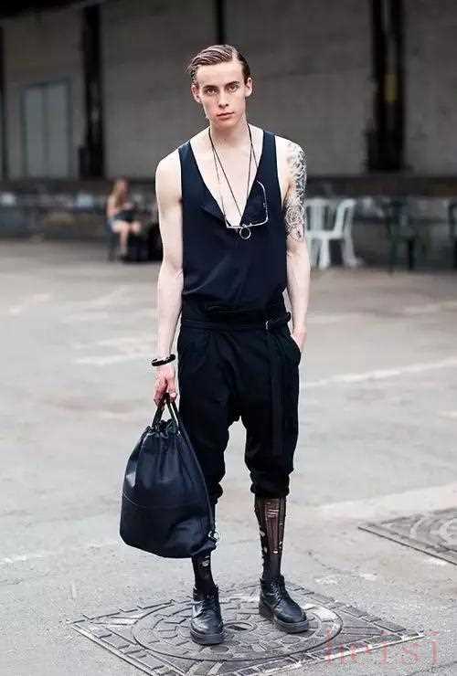 這一名稱在時裝界的運(yùn)用是在1966年,由Yves Saint Laurent創(chuàng)造的吸煙裝混淆了性別,讓它開始嶄露頭角。在此之后,Hedi Slimane執(zhí)掌下的Dior Homme則打破了男性僵局,并讓人隨之聯(lián)想起首個妖冶得分不出性別的明星David Bowie;并因而讓人們讀懂了Raf Simons的"第四性"——屬于青少年的,因未發(fā)育而與男性、女性乃至同性戀區(qū)分開來的第四種性別。