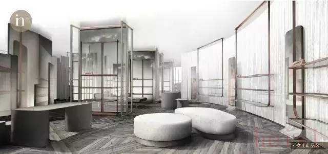 女鞋區(qū):打破了規(guī)整俗套的鞋區(qū)布局,淡化過道走廊概念,利用蜿蜒人行動(dòng)線,以便展示出更多優(yōu)美的產(chǎn)品陳列。