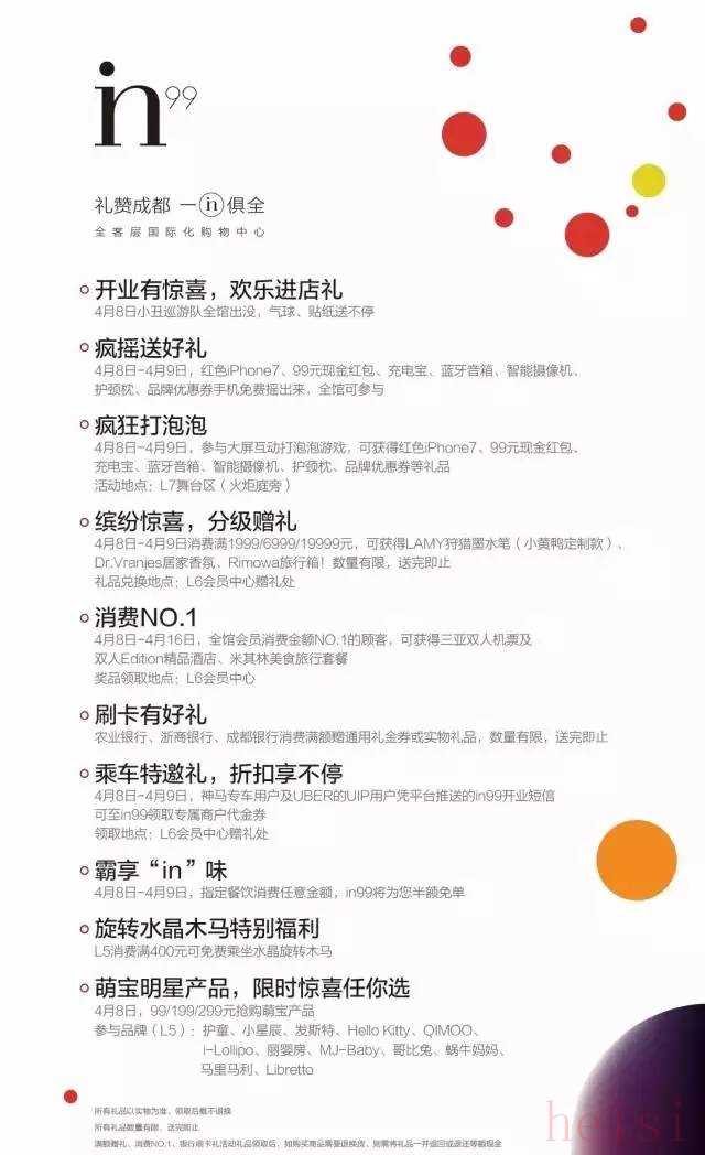 開業(yè)初期,in99通常會(huì)引入很多知名品牌,涵蓋時(shí)尚服飾、美妝、生活家居、餐飲美食等,并且常常會(huì)有豐富的開業(yè)活動(dòng)和優(yōu)惠,非常受周邊居民和年輕人的歡迎。