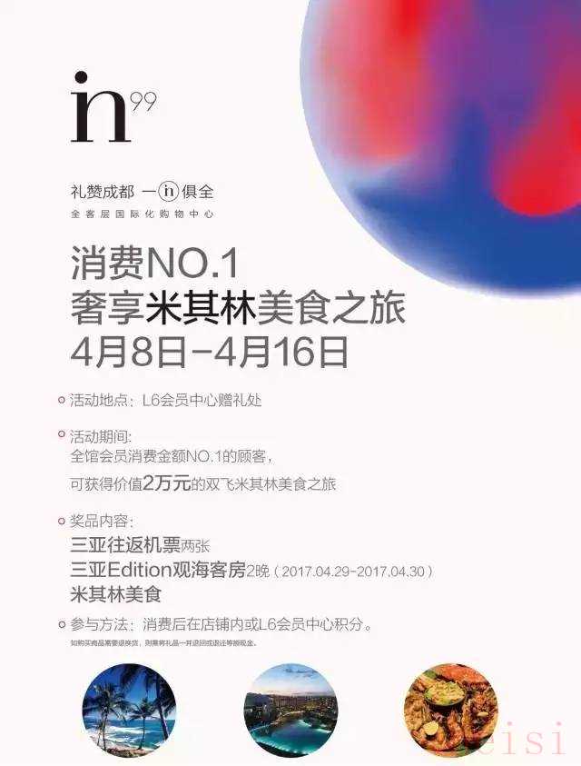 活動(dòng)內(nèi)容:1份價(jià)值20000元的三亞Edition米其林嘉年華雙人套餐(含三亞雙人往返機(jī)票+雙人Edition酒店(2017.04.29-2017.04.30時(shí)間內(nèi)使用)+米其林美食旅行套餐)