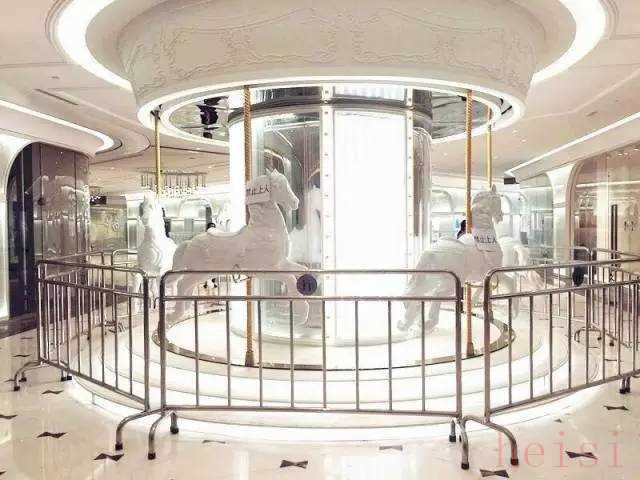 而在國(guó)際童裝區(qū),萬萬沒想到一個(gè)碩大的旋轉(zhuǎn)木馬正屹立其中。雪一樣白的駿馬圍繞著城堡不停的旋轉(zhuǎn)跳躍不停歇~
