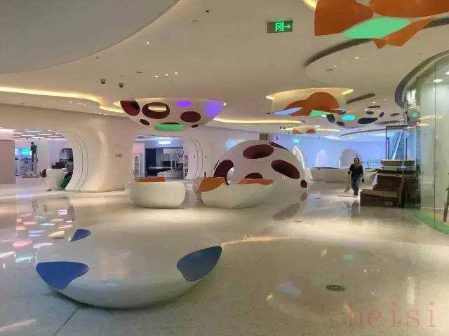 除此之外,不得不提的是這個(gè)專為兒童打造的公共休息區(qū)。它以小朋友最感興趣的恐龍蛋、牙齒、蕨類植物作為設(shè)計(jì)元素,整個(gè)空間充斥著超現(xiàn)代、超時(shí)空的夢(mèng)幻感,置身其中猶如進(jìn)入一個(gè)前所未有的新紀(jì)元,對(duì)于后期培養(yǎng)小孩子的想象力和創(chuàng)造力極為有利。