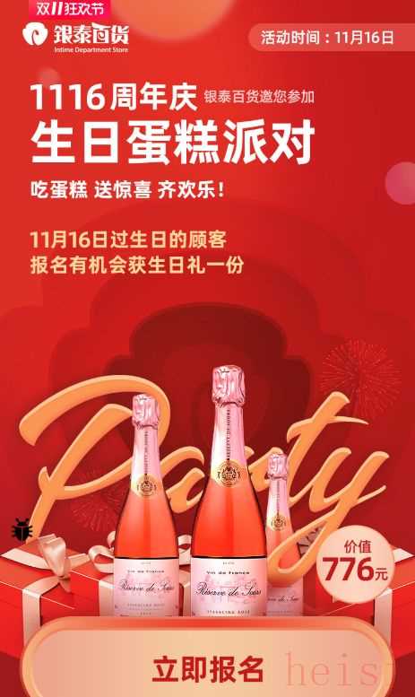 "11.16生日禮":為特定日期出生的小伙伴準備了豪華生日禮,這太貼心了!銀泰真是用心在為顧客慶祝生日。