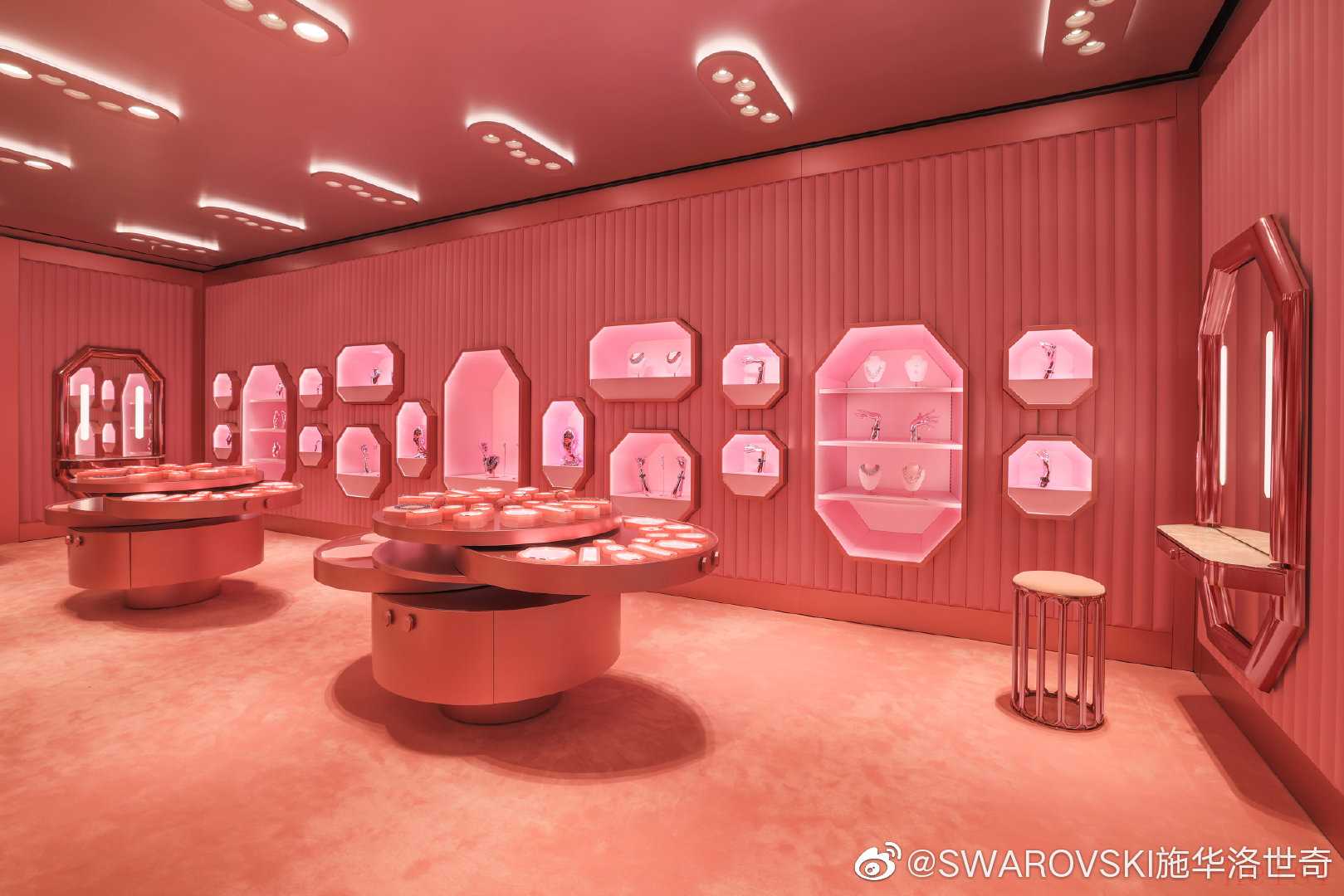 延續(xù)了各地Instant Wonder的設(shè)計(jì)創(chuàng)意,這家全新旗艦店看上去也與往常藍(lán)白相間的施華洛世奇門店有所不同。