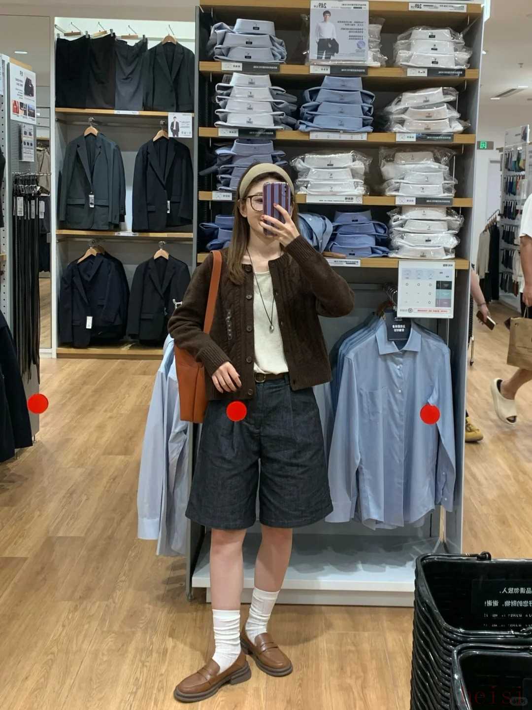 2、選款式:盡可能選外套、大衣、夾克這種設(shè)計簡單大氣的外套,買落肩的上衣,買不緊身沒有太多口袋設(shè)計的褲子,就會比較合身。