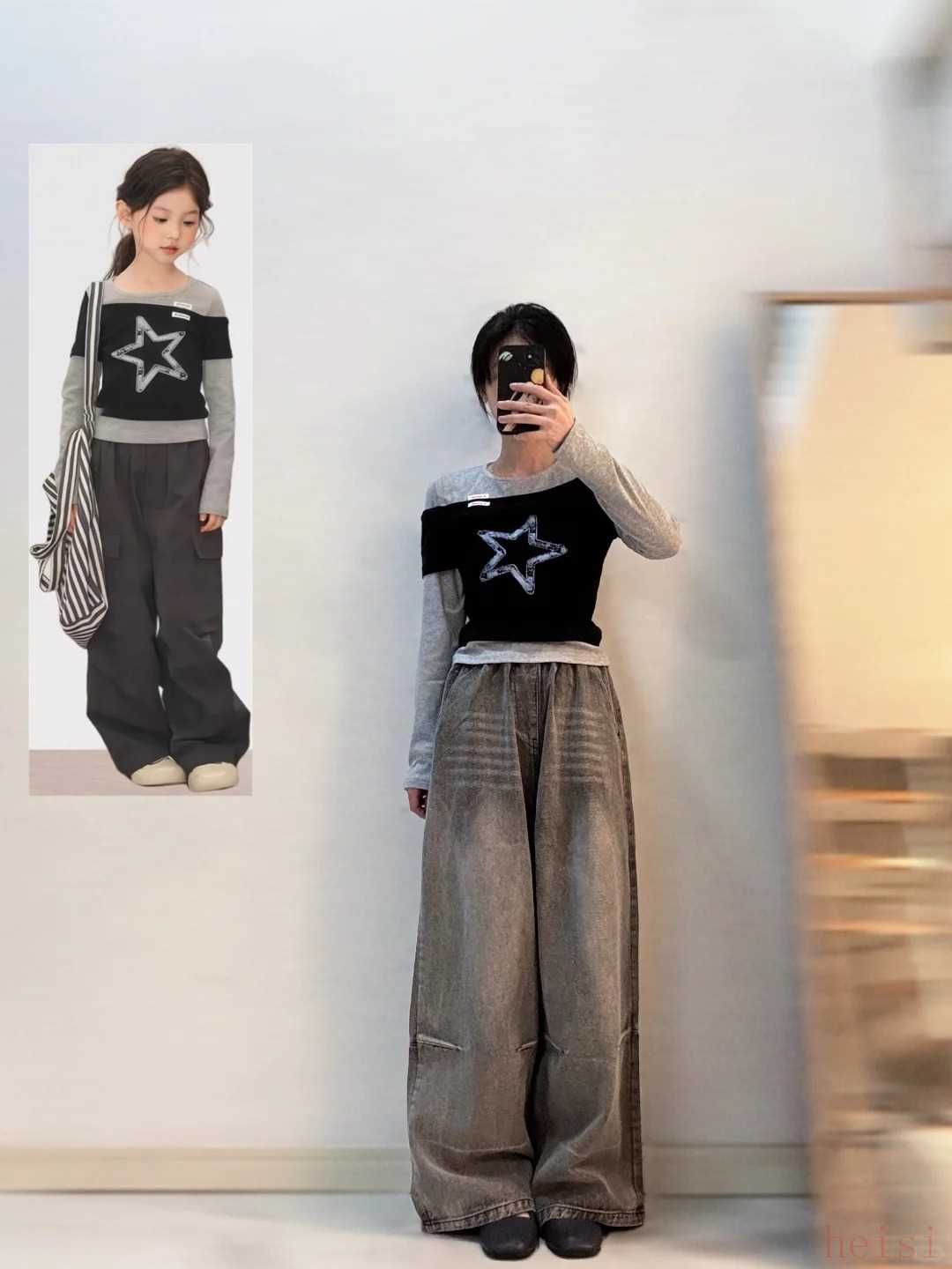 5、混搭是王道:將童裝單品與成人裝進(jìn)行混搭,比如用童裝上衣搭配高腰成人牛仔褲,平衡稚氣感。