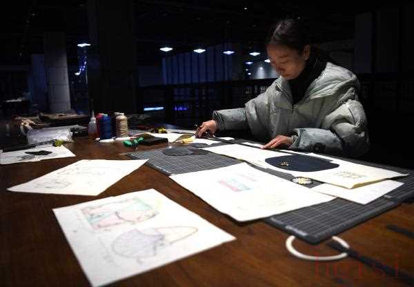 ↑12月11日,一家樂器箱包生產(chǎn)企業(yè)的設(shè)計(jì)人員在設(shè)計(jì)產(chǎn)品。